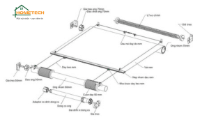 Hệ thống rèm vải tự động khá đơn giản và tương đồng với rèm truyền thống. Bao gồm những bộ phận chính sau :